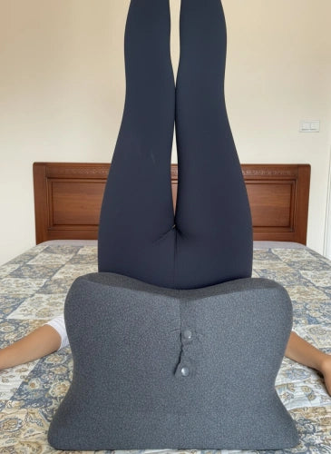 Die Lösung: Der 27° Winkel des Mallow Pillow hebt dein Becken um genau 7 cm an. Dein Becken öffnet sich natürlich, die Wirbelsäule bleibt ausgerichtet, und die Belastung verteilt sich gleichmäßig über deinen gesamten Beckenboden.